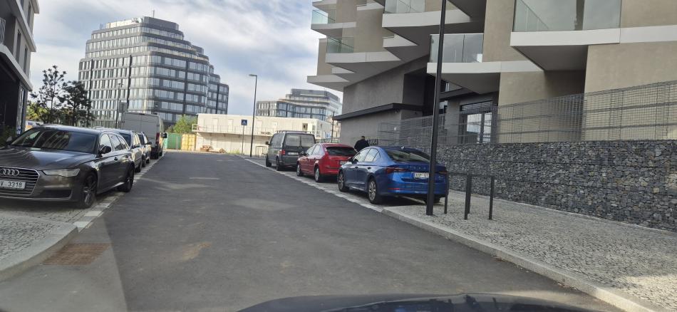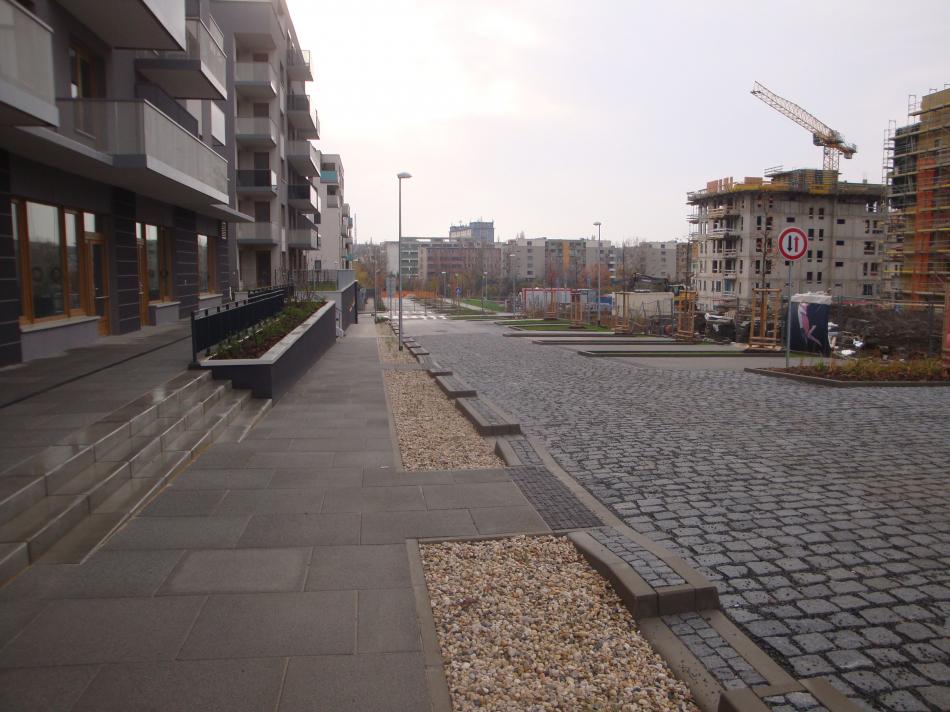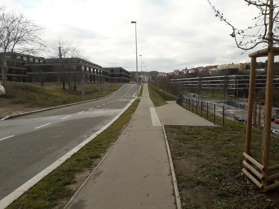 Novostavba místní komunikace včetně chodníků a parterů domů B1-B2 ulice Hagiborská v zástavbě bytovými domy Hagiboru. |