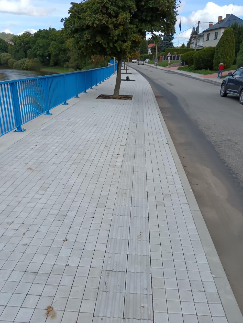 V návaznosti na rekonstrukci mostu přes Sázavu byl realizován záměr obnovy navazujícího nábřeží. Součástí prací byly statické úpravy římsy nábřežní zdi, chodníky, palisádové zídky, přechody pro pěší a veřejné osvětlení. |