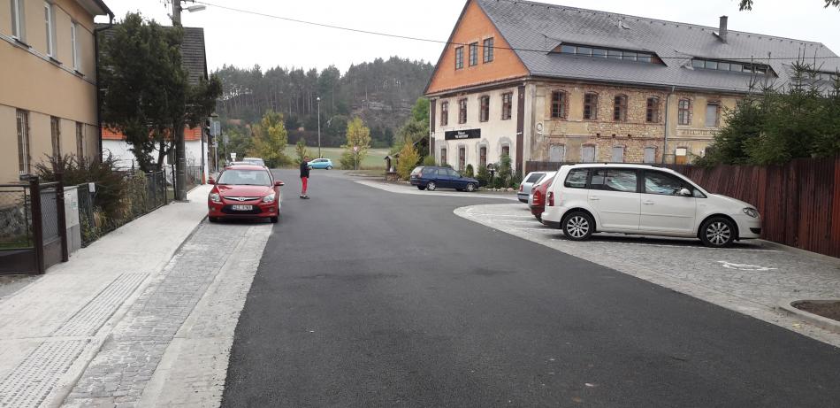 Chodníky podél silnice II.třídy v městské části Podělusy. Součástí stavby byly úpravy oplocení a autobusové zastávky. |